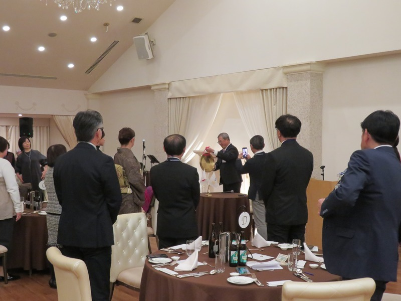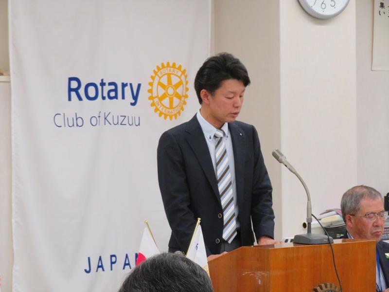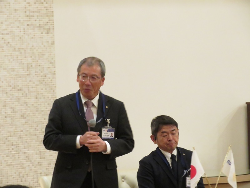 奥山会長新任挨拶 青山ガバナー補佐新任挨拶 新旧会長幹事バッジ交換