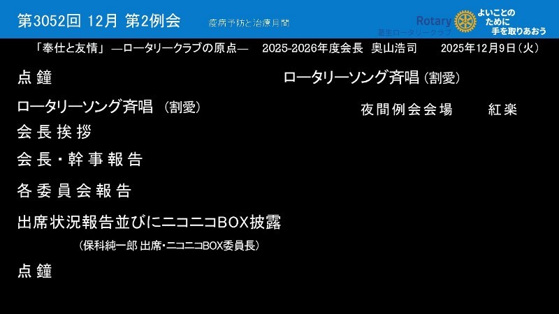 2025年12月10日(水) 夜間例会 紅楽