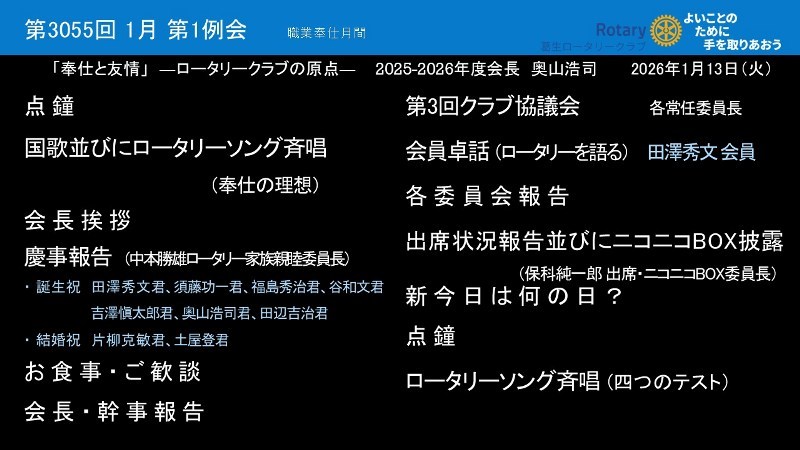 2026年1月13日(火) 第1例会