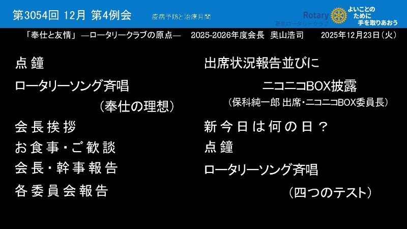 2025年12月23日(火) 第4例会